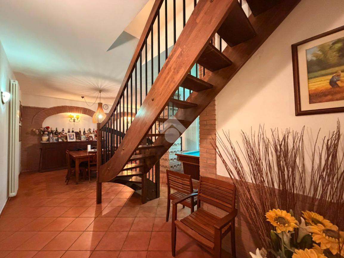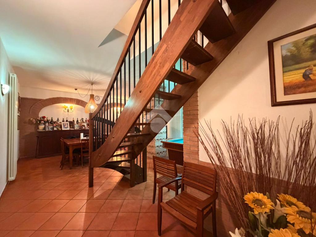 L’immobile si sviluppa su due livelli. Al piano terra è presente un’ampia cantina adibita a taverna, oltre ad un comodo bagno con doccia. Il primo piano ospita l’abitazione principale composta da tre camere da letto, salotto con camino, cucina abitabile con affaccio su terrazza, un secondo bagno completo di doccia e vasca ed, infine, un'ampia veranda. Gli ambienti si distinguono per metrature generose ed ottima luminosità. Completano la proprietà un ampio garage, il giardino pertinenziale e tre ettari di terreno, elemento di particolare interesse per chi è alla ricerca di spazi esterni esclusivi e indipendenza in posizione tranquilla.